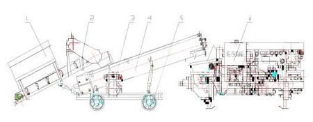本攪拌機(jī)為便于運(yùn)輸及存放,采用分體式結(jié)構(gòu)。水泥輸送帶、沙子輸送帶、細(xì)石輸送帶為一部件,螺旋攪拌為一部件。為便于活動(dòng)以上各部件都裝有拖輪或滾輪。運(yùn)輸時(shí)攪拌機(jī)構(gòu)放下支腿使導(dǎo)軌輪離地即可裝車運(yùn)輸。