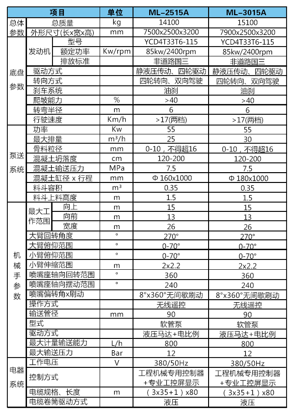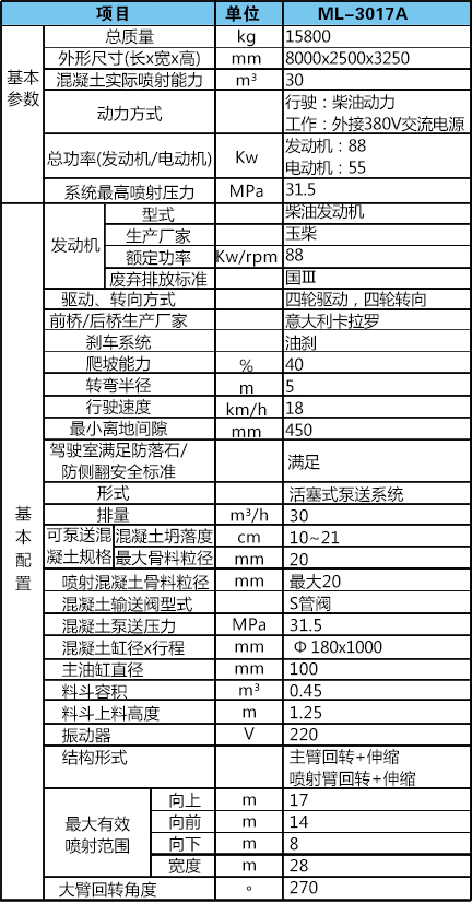 5.正常噴射施工時由電動機驅動。電力中斷情況下也可以利用柴油機的動力使泵送系統(tǒng)短時工作、噴射機械手以較慢的速度實現(xiàn)收、放機械手和對泵進行清洗等各種操作。