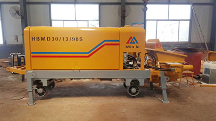 該泵是我廠吸收和消化當前國內外混凝土泵的先進技術,針對礦井混凝土施工諸多不便的條件,并結合長期混凝土泵的設計和制造經驗,同科研單位共同研制生產的創(chuàng)新產品,改寫了礦用混凝土泵無法整機下井的歷史,改變了以往井下混凝土施工采用人工多層倒運的傳統(tǒng)作業(yè)方式。