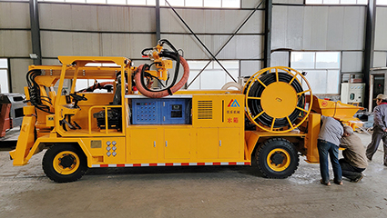 5.在正常噴射施工中,電動機驅動它馳騁在工地上。即便在電力中斷的情況下,柴油機也能短暫地驅動泵送系統(tǒng),讓噴射機械手以較慢的速度進行各種操作,確保施工的連續(xù)性。
