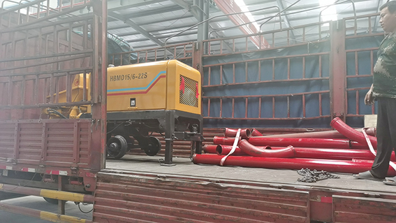 混凝土輸送泵應(yīng)安放在堅(jiān)實(shí)平整的地面,放下支腿,將機(jī)身安放平穩(wěn)。