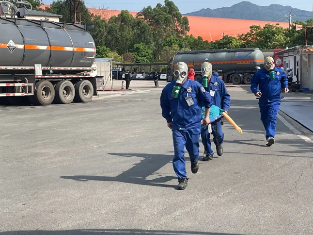 警戒疏散組對通往氨水車間路口進行警戒,組織廠區(qū)人員有序疏散至安全地方。后勤保障組立即實施物資準備和信息聯(lián)絡工作。